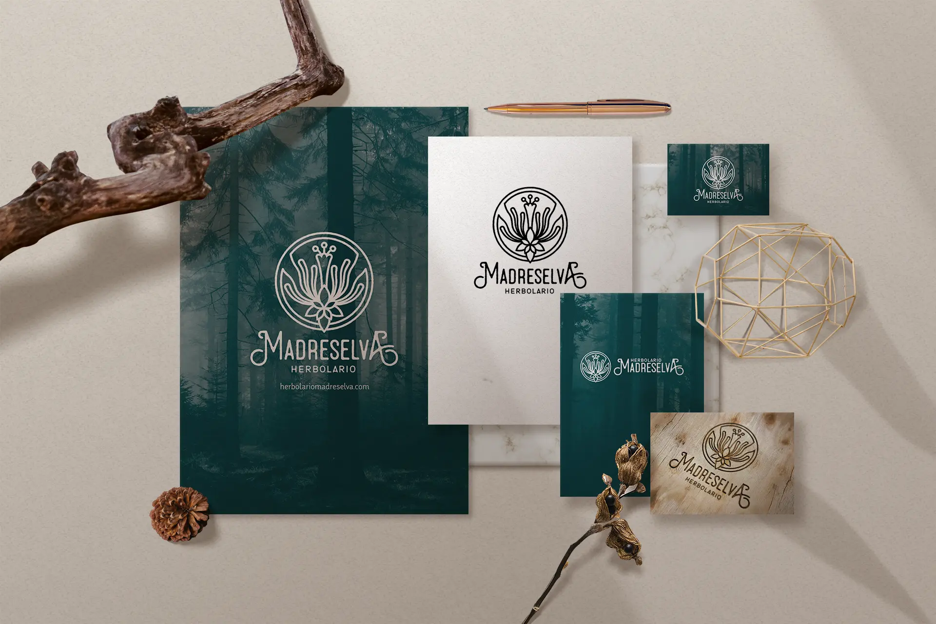 En el proyecto de identidad visual para el Herbolario Madreselva de Madrid, he fusionado la estética gráfica de las boticas del siglo XIX con la mística propia de la iconografía élfica del universo de Tolkien, a quien nuestra cliente admira profundamente y que además alude a los poderes sanadores de estos seres, que tanto tienen que ver con los objetivos de los servicios y productos de la naturopatía y la herboristería; encapsula lo natural lo medicinal. La elección de un trazo rústico e irregular representa la esencia misma de lo orgánico y lo auténtico, un eco de la bella imperfección de la naturaleza. El isotipo, representando la delicada y aromática flor de la madreselva, se convierte en el corazón de esta marca.