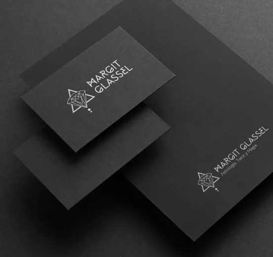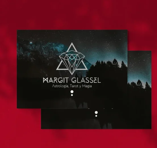 En el diseño de la marca de Margit Glassel, una destacada ocultista especializada en sus servicios de astrología, tarot y magia, he capturado la esencia de su enfoque místico y personal, así como su profundo conocimiento. La marca se articula en torno a formas geométricas rectas, evocando con su tipografía experimental de palo seco, los símbolos de grimorios antiguos y las runas. El isotipo es significativo: bajo un triángulo, que representa la espiritualidad y el conocimiento elevado, hay un diamante negro, un elemento poderoso en ciertas corrientes esotéricas. La paleta cromática se enfoca en trazos blancos o plateados sobre un fondo negro. Con todo, crea una conexión visual con el misterio y la sabiduría ancestral que define su trabajo.