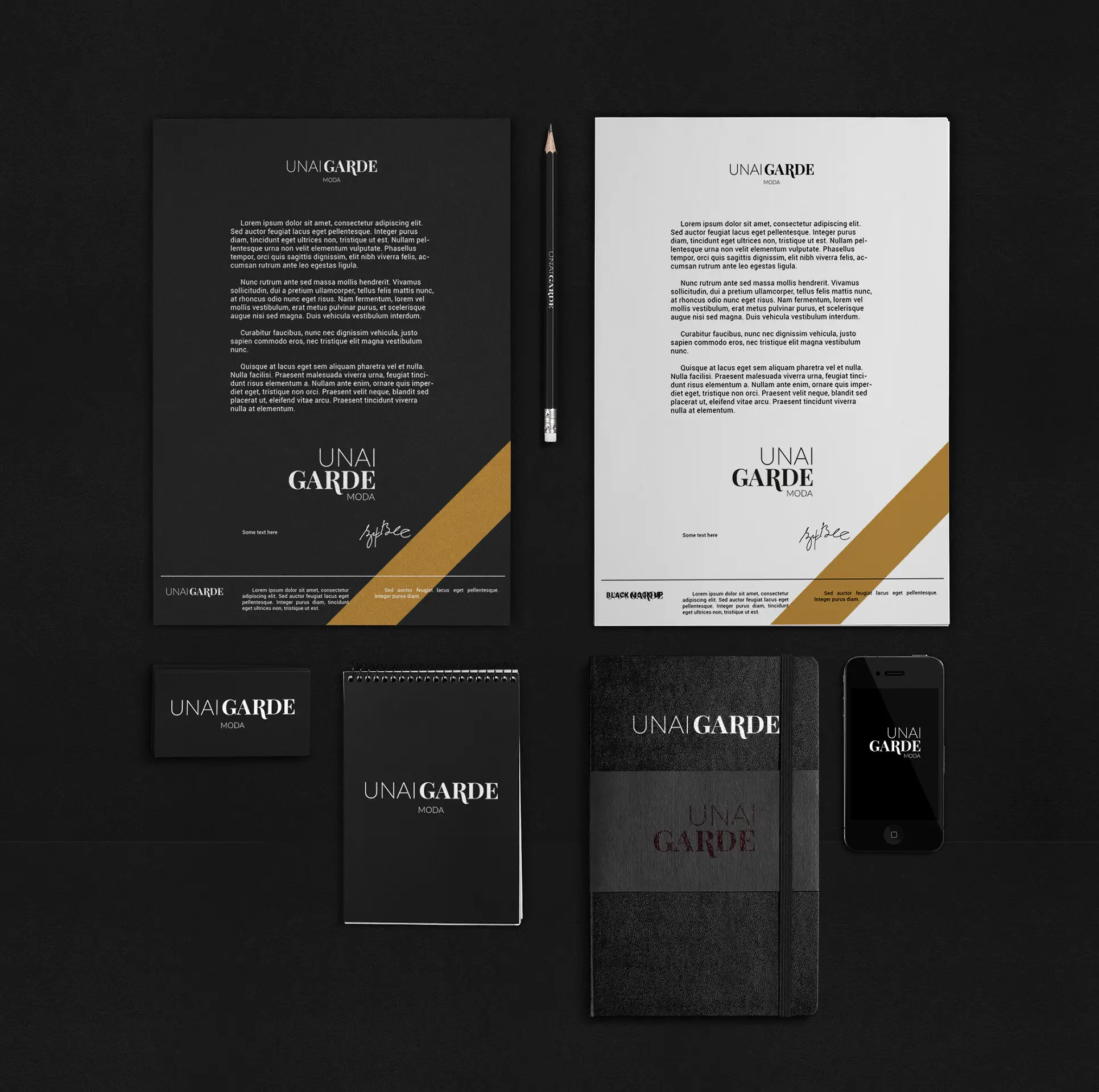 La identidad visual para este diseñador de moda combina modernidad con un toque clásico, emanando elegancia. Muestra dos fuentes: Una de palo seco, fina y regular, que simboliza modernidad y sencillez, mientras que otra de tipo romana moderna, con inspiración más clásica, con remates y contraste. Esta combinación crea un juego visual que une la contemporaneidad con la gracia de los diseños tradicionales. Los colores monocromáticos, otorgan a la marca una presencia atemporal, evocando la clase y el lujo de las grandes casas de moda. En ocasiones, un toque dorado añade un elemento de opulencia discreta. Este diseño se alinea con la elegancia y el prestigio característicos de las marcas de alta costura.